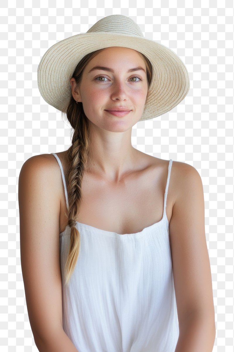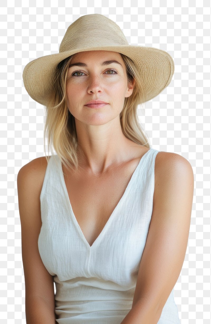 PNG Woman in her 33 years old in Spaghetti strap linen top portrait hat summer. https://www.rawpixel.com/image/17166072/png-woman-her-years-old-spaghetti-strap-linen-top-portrait-hat-summerView license