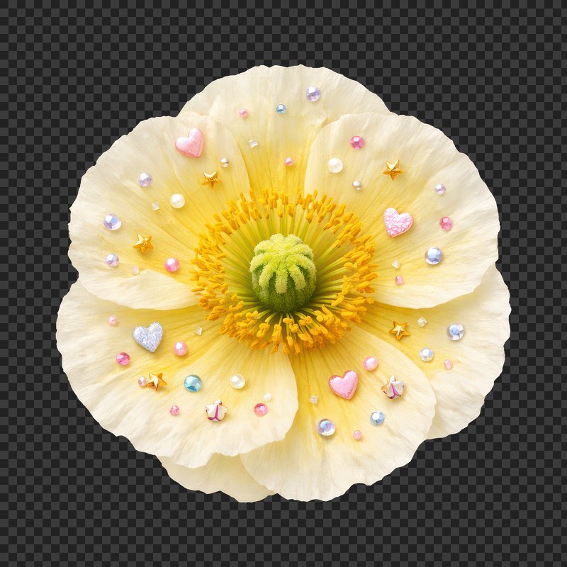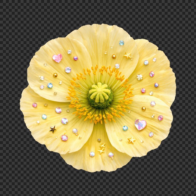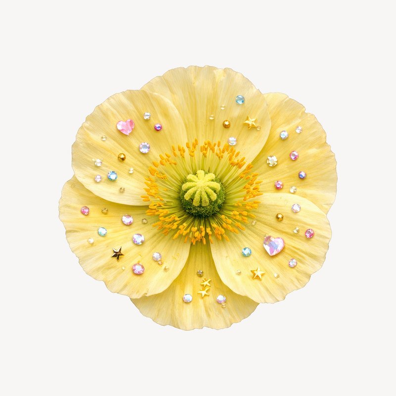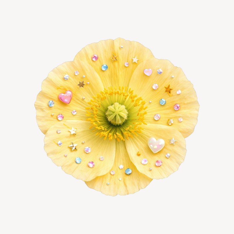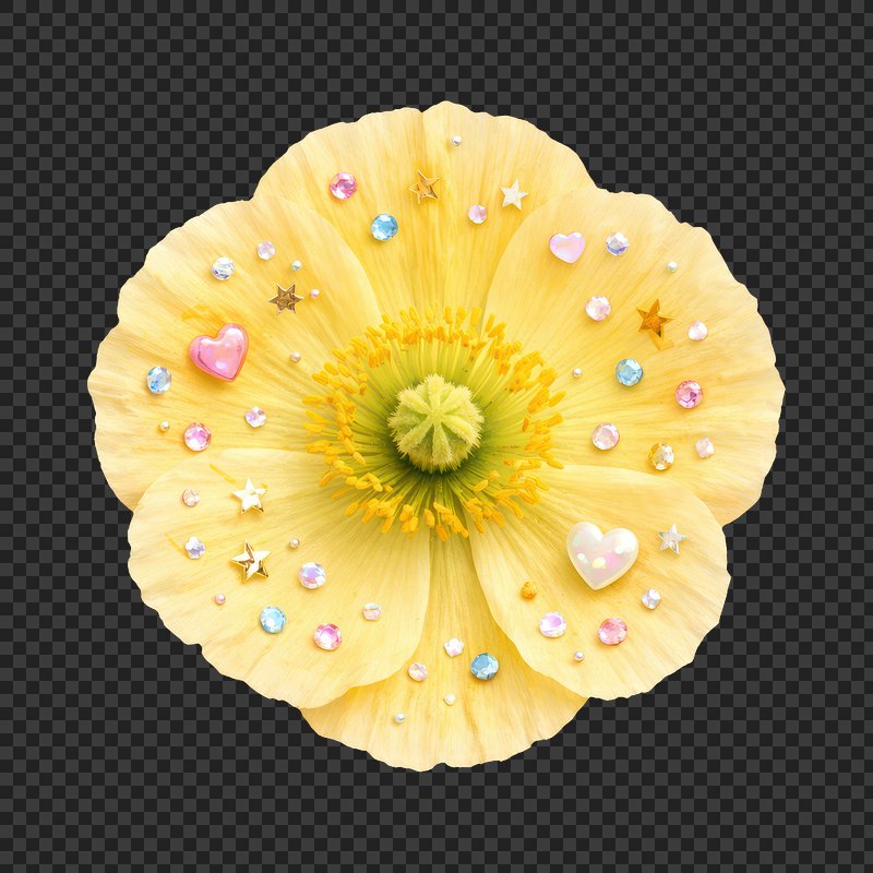 PNG Yellow flower adorned with gems. https://www.rawpixel.com/image/25342250/png-yellow-flower-adorned-with-gemsView license