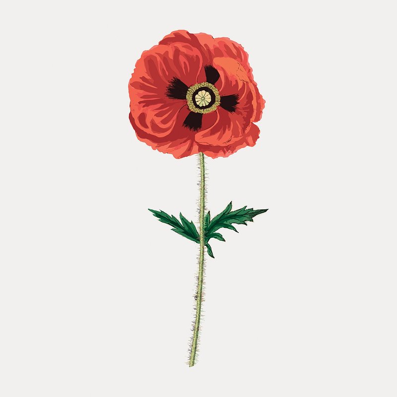Common poppy (Papaver rhoeas) illustration from Medical Botany (1836) by John Stephenson and James Morss Churchill . https://www.rawpixel.com/image/327218/premium-illustration-psd-poppy-flowerView license