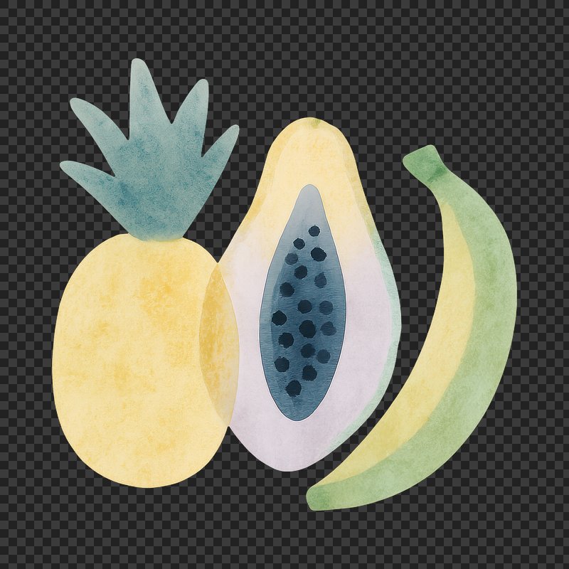 PNG Tropical fruits watercolor illustration. https://www.rawpixel.com/image/24822742/png-tropical-fruits-watercolor-illustrationView license