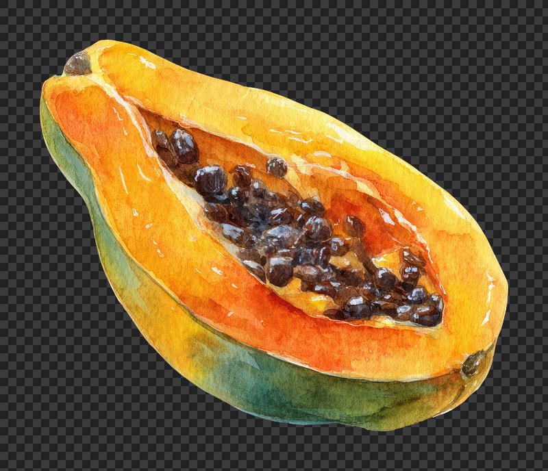 PNG Vibrant papaya watercolor illustration. https://www.rawpixel.com/image/25335044/png-vibrant-papaya-watercolor-illustrationView license