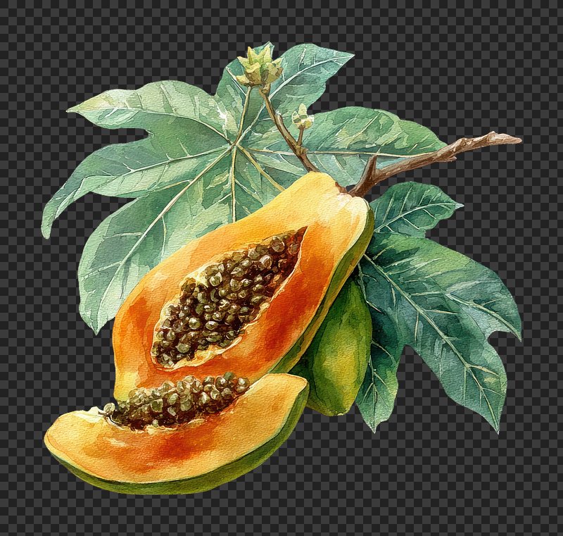 PNG Papaya fruit plant food. https://www.rawpixel.com/image/12546573/png-papaya-fruit-plant-food-generated-image-rawpixelView license