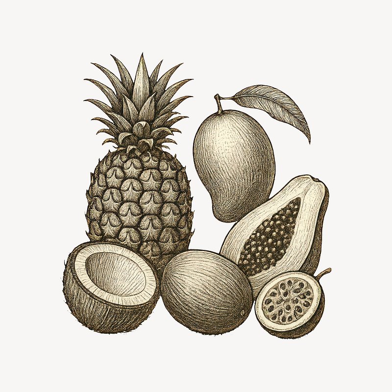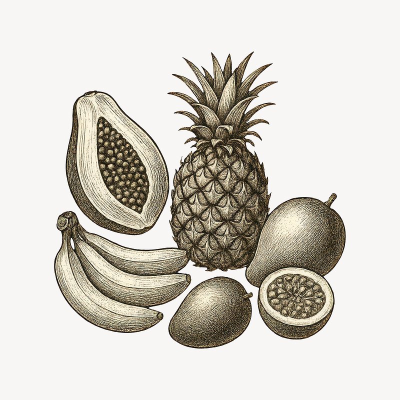 PNG Vintage tropical fruit illustration. https://www.rawpixel.com/image/24407335/png-vintage-tropical-fruit-illustrationView license