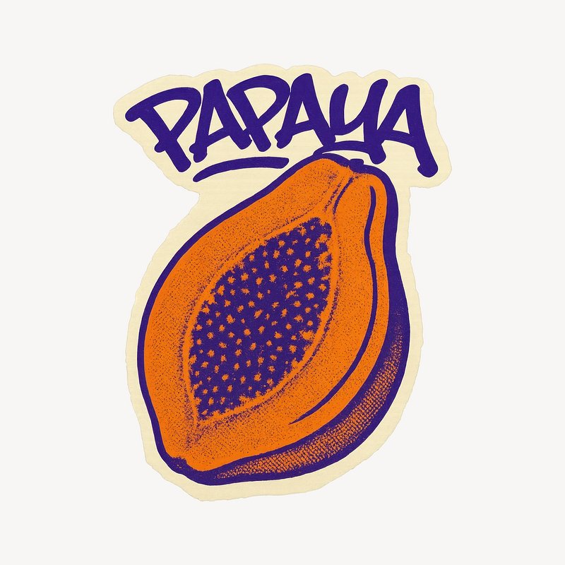 PNG Retro papaya fruit illustration sticker. https://www.rawpixel.com/image/24519356/png-retro-papaya-fruit-illustration-stickerView license