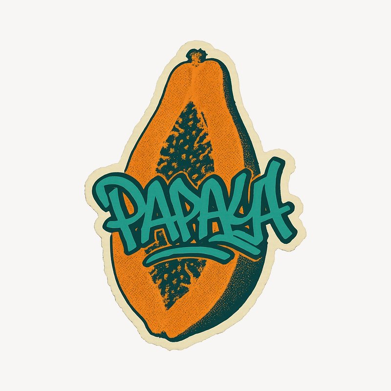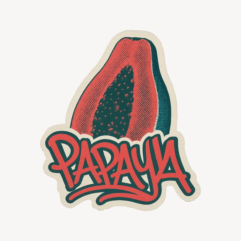 Retro papaya fruit illustration sticker. https://www.rawpixel.com/image/24653594/retro-papaya-fruit-illustration-stickerView license