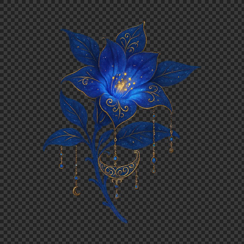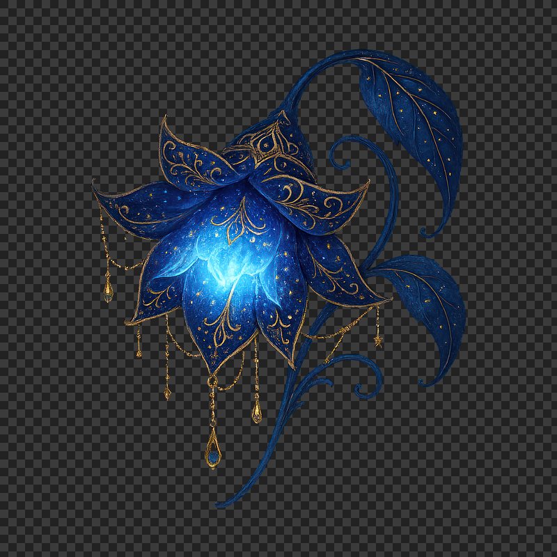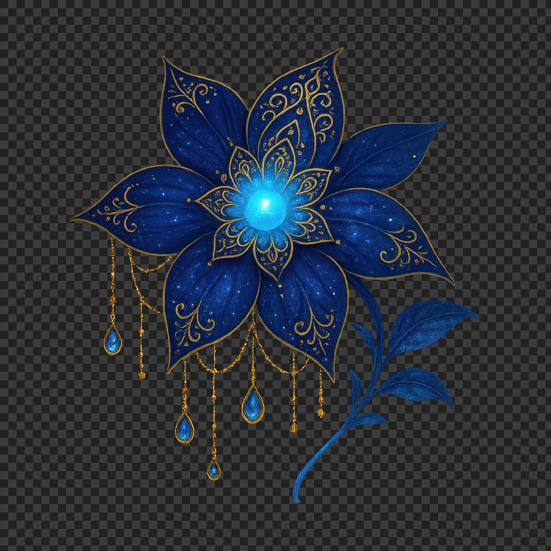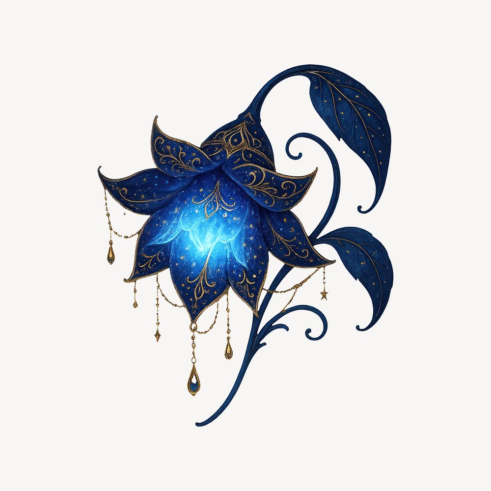 PNG Mystical blue flower with ornaments. https://www.rawpixel.com/image/19495824/png-mystical-blue-flower-with-ornamentsView license