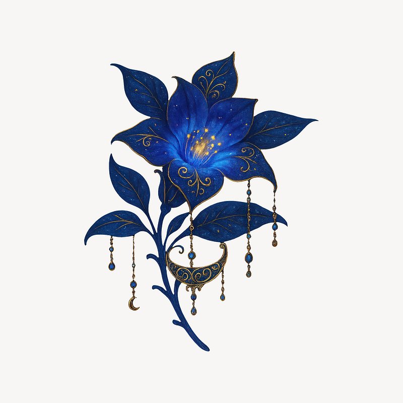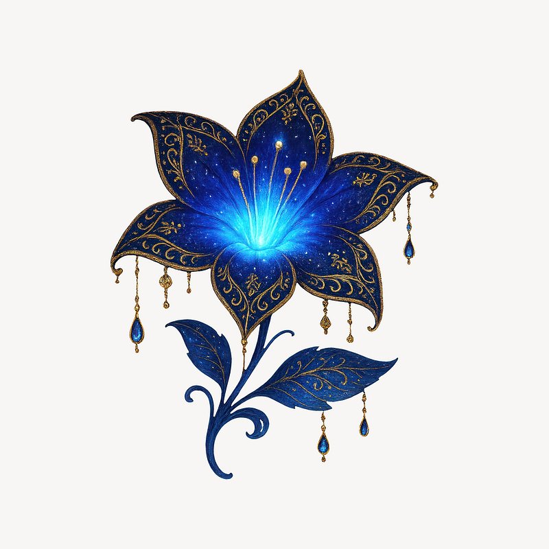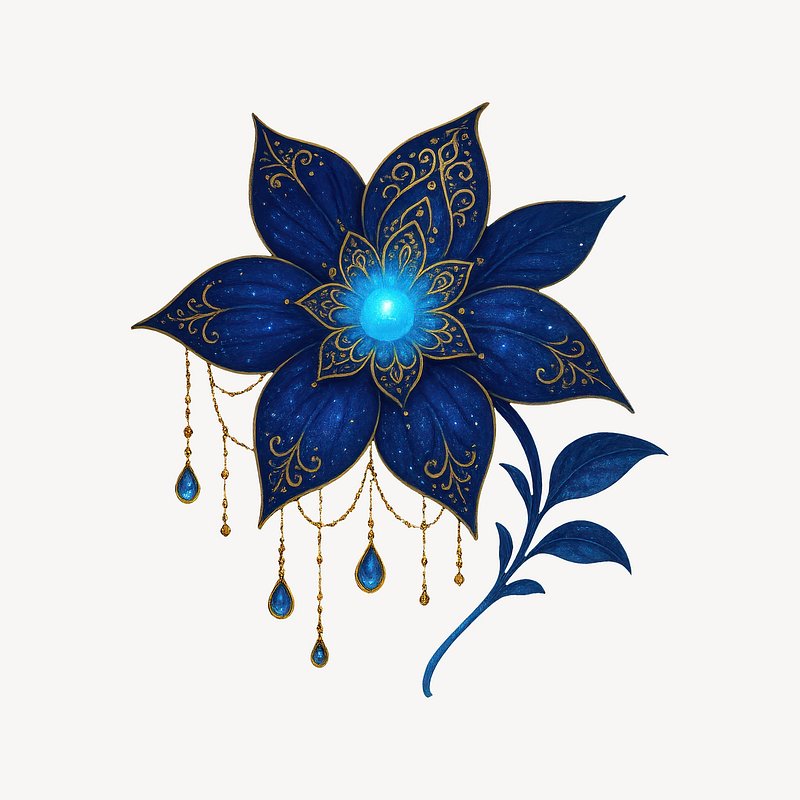 Mystical blue flower with ornaments. https://www.rawpixel.com/image/21432229/mystical-blue-flower-with-ornamentsView license