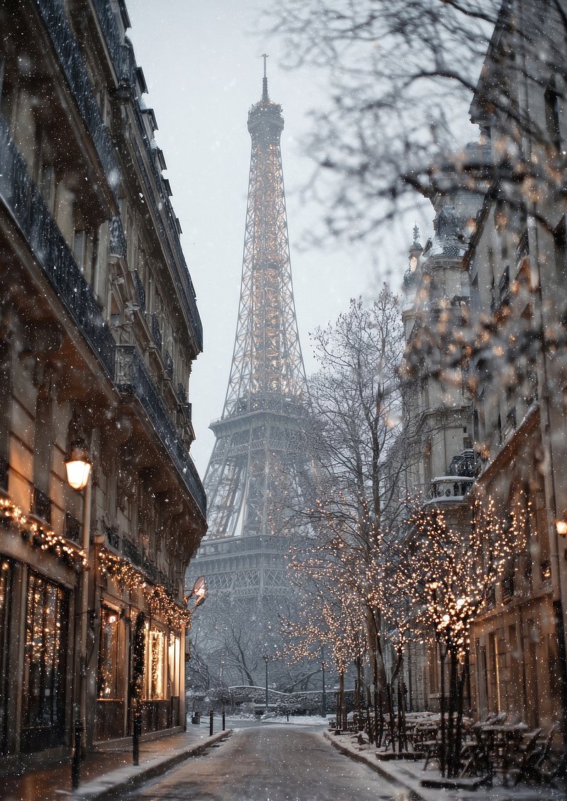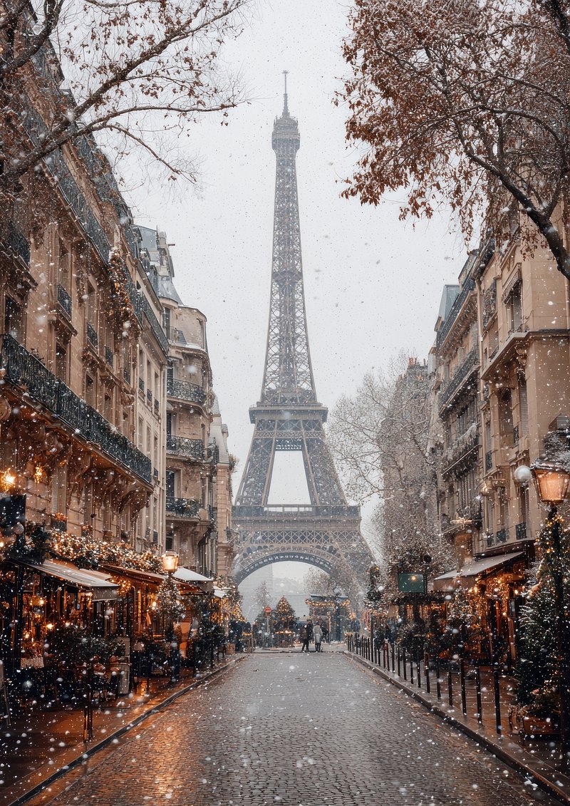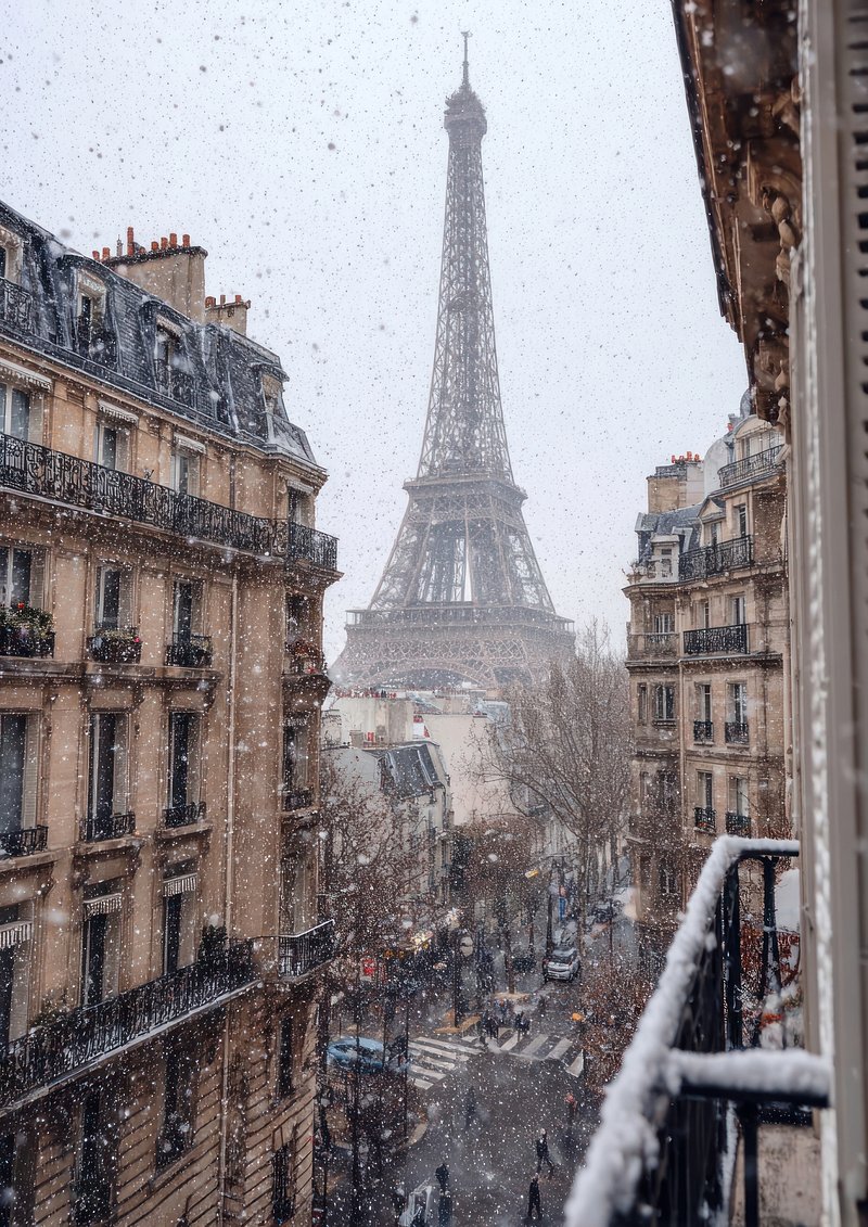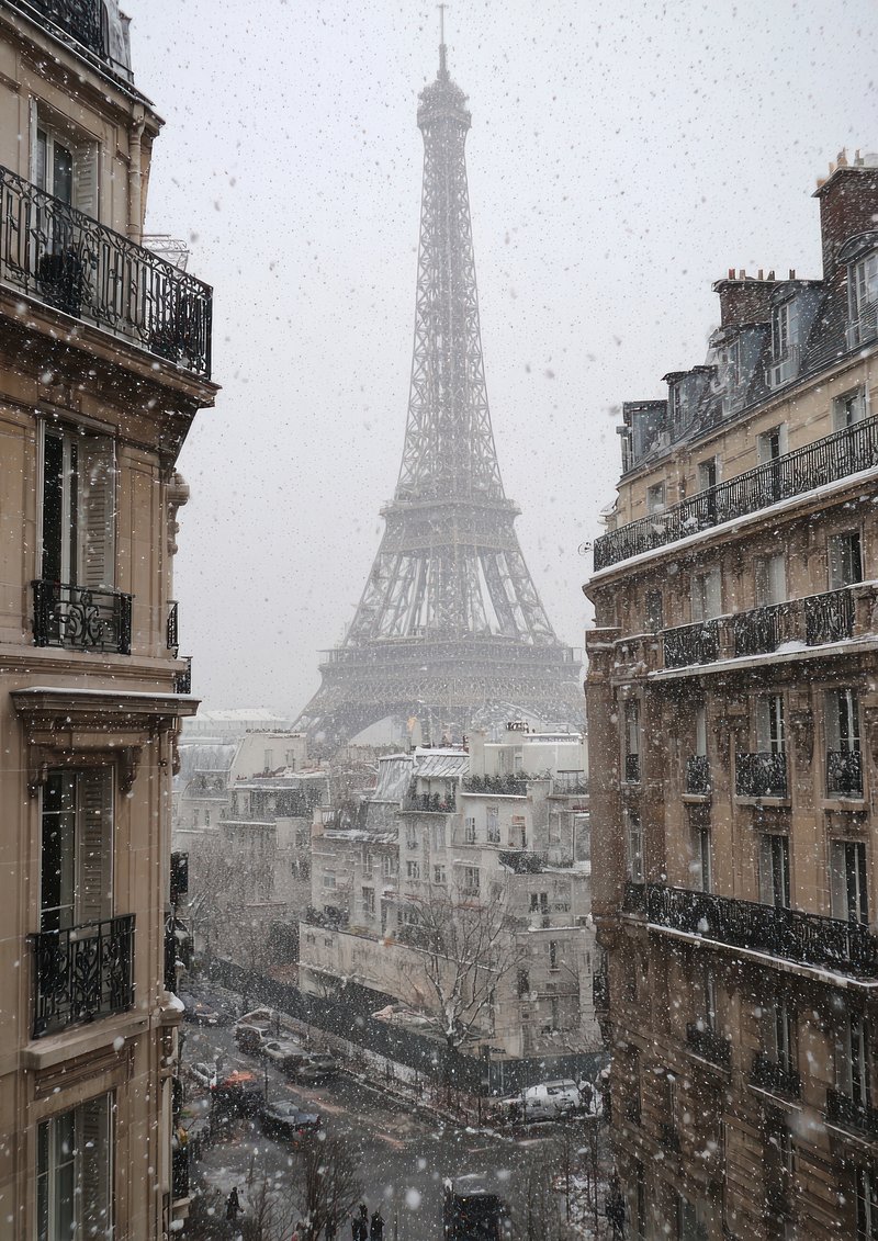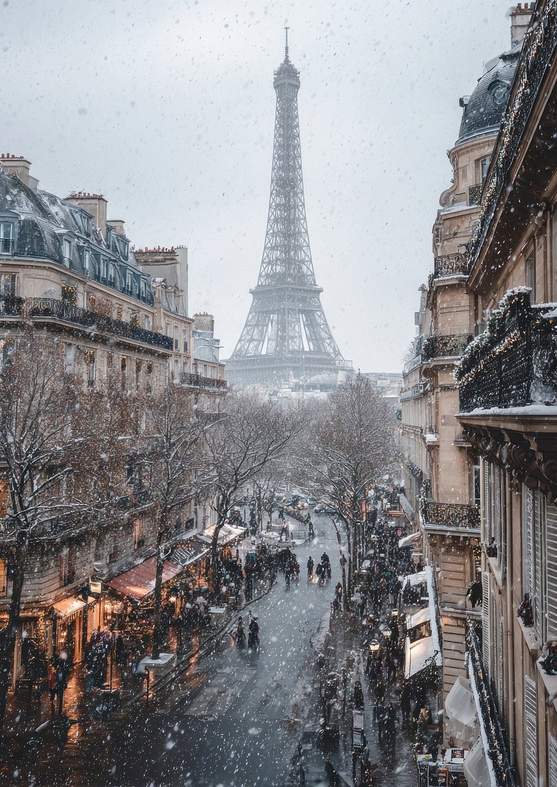 Snowy Parisian street with Eiffel. https://www.rawpixel.com/image/23202814/snowy-parisian-street-with-eiffelView license