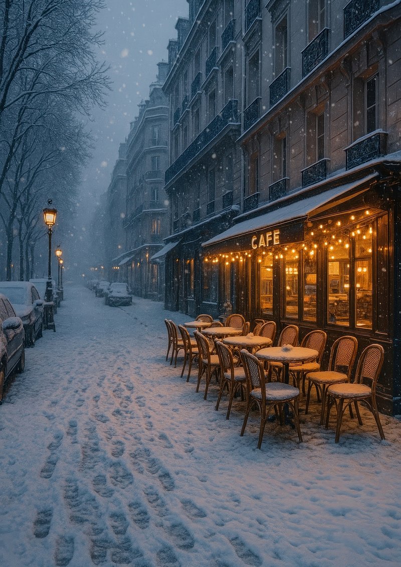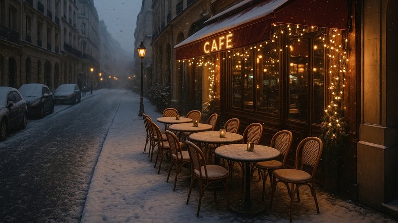 Cozy Parisian cafe in snow. https://www.rawpixel.com/image/23880573/cozy-parisian-cafe-snowView license