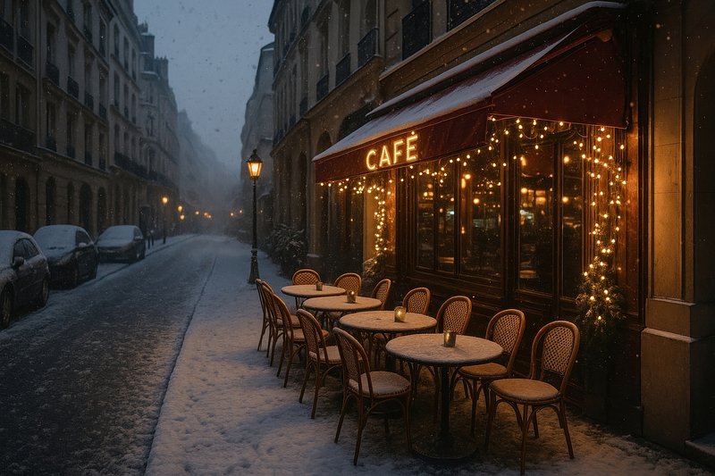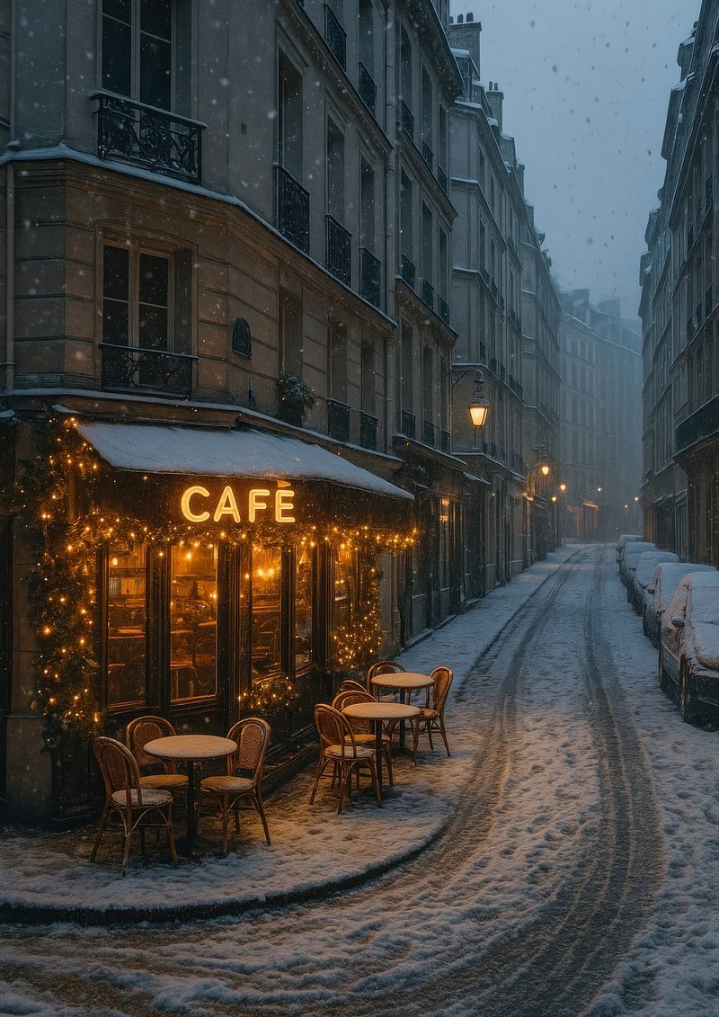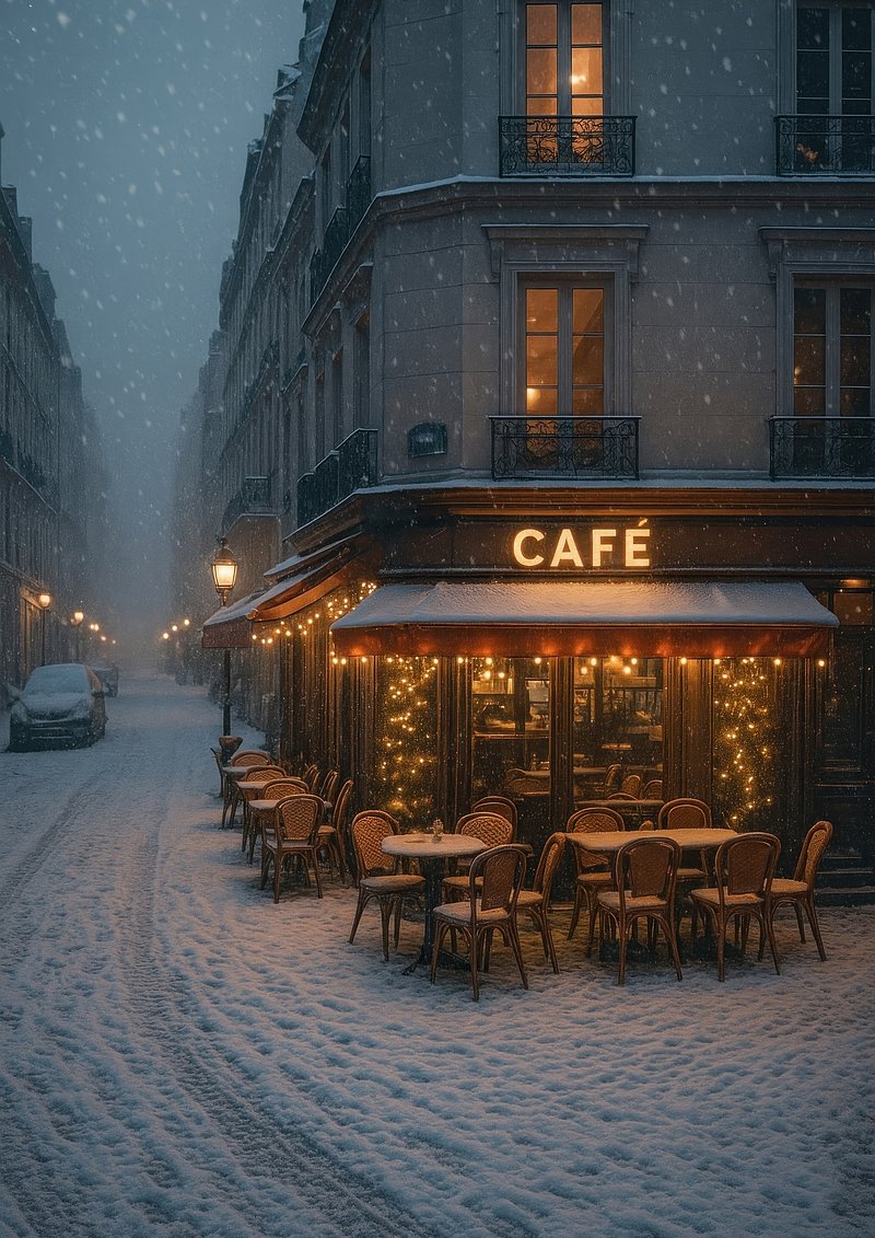 Cozy Parisian café snowy evening https://www.rawpixel.com/image/24045481/cozy-parisian-cafe-snowy-eveningView license