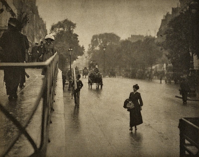 A Wet Day on the Boulevard, Paris (1894) by Alfred Stieglitz. Original from The Art Institute of Chicago. Digitally enhanced… https://www.rawpixel.com/image/3809204/photo-image-art-people-vintageFree Image from public domain license