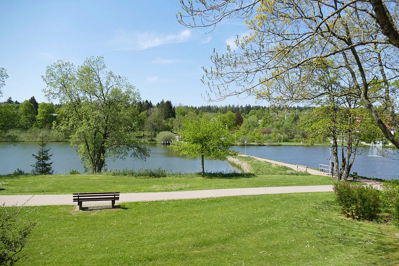 Woodbench in the forest with lake view. Original public domain image from Wikimedia Commons https://www.rawpixel.com/image/3283947/free-photo-image-park-bench-public-domain-nature-leafFree Image from public domain license