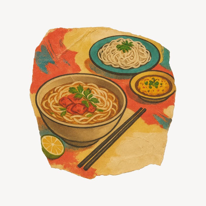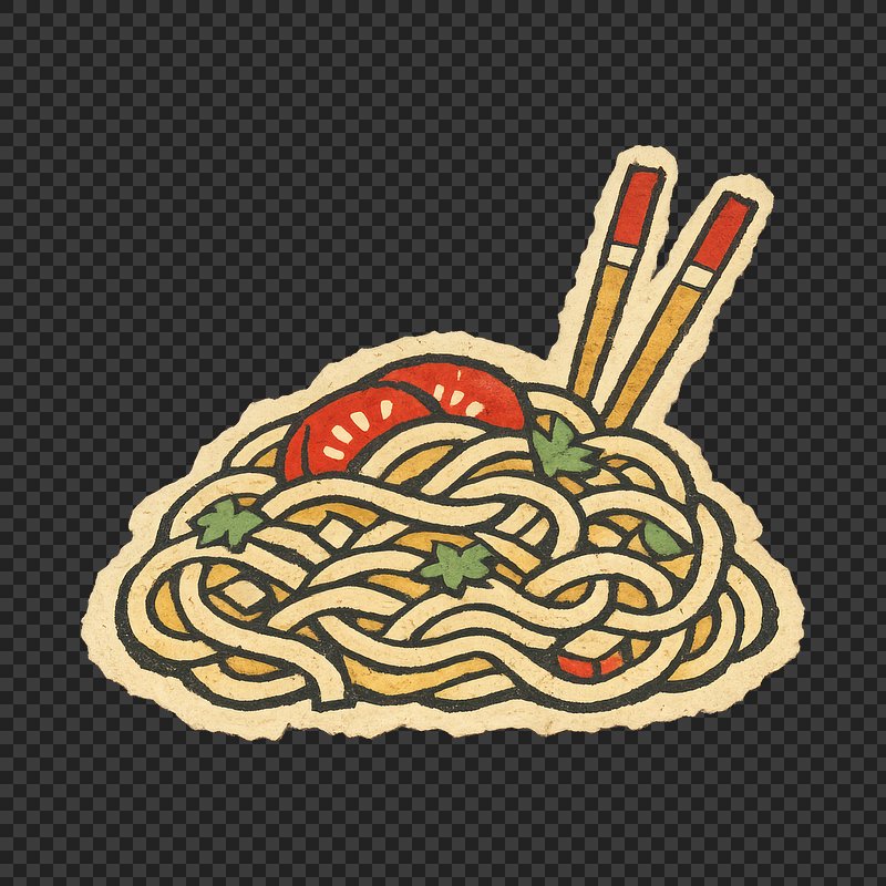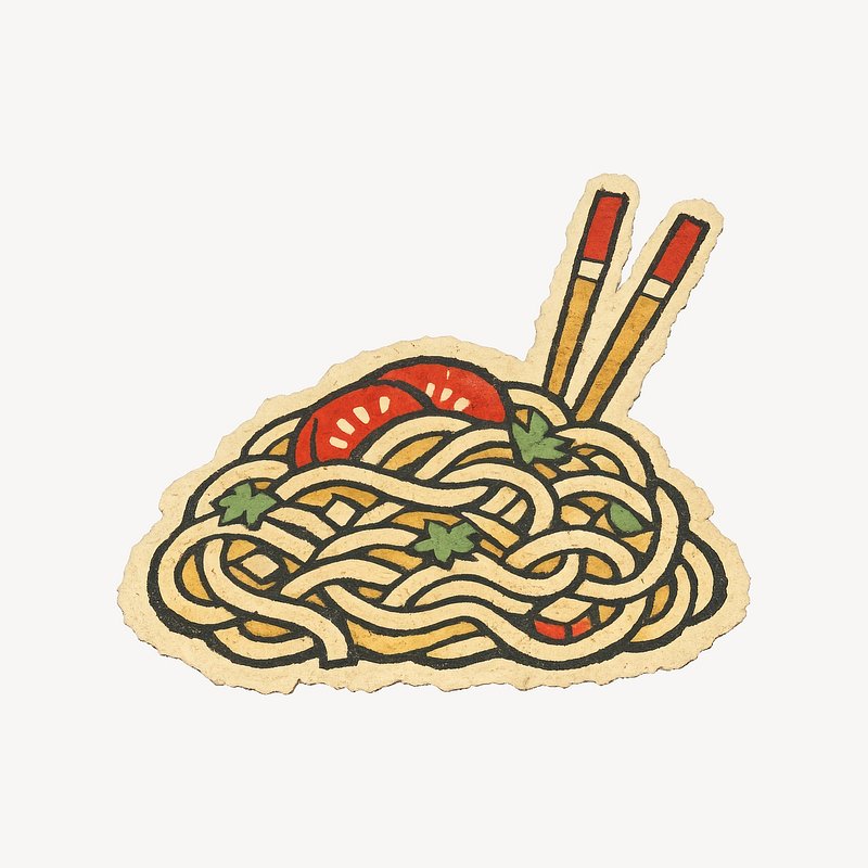 Illustrated noodles with chopsticks. https://www.rawpixel.com/image/25538297/illustrated-noodles-with-chopsticksView license