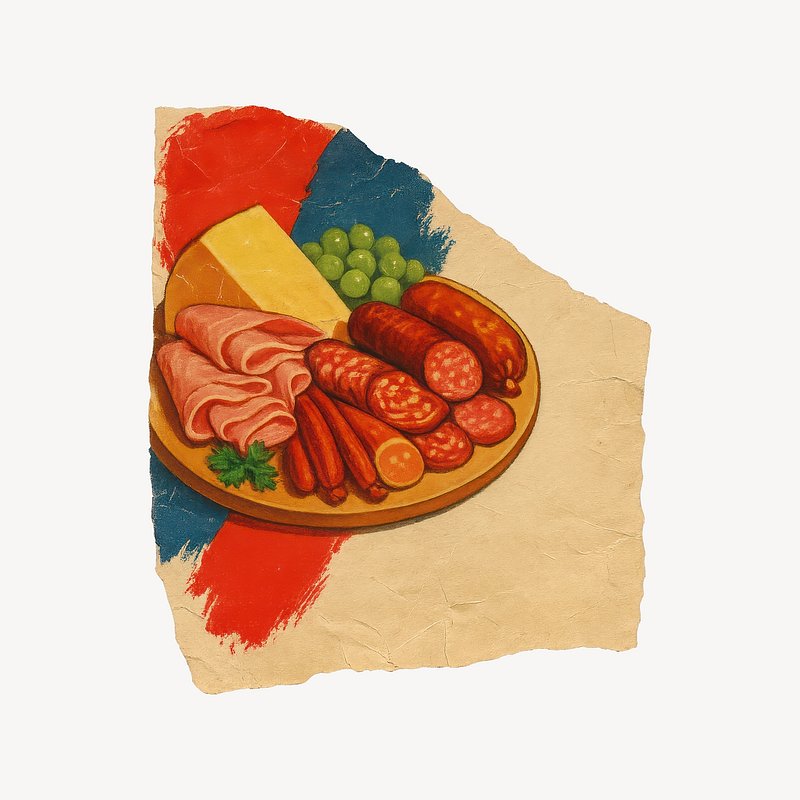 Vintage charcuterie illustration on paper. https://www.rawpixel.com/image/24565155/vintage-charcuterie-illustration-paperView license