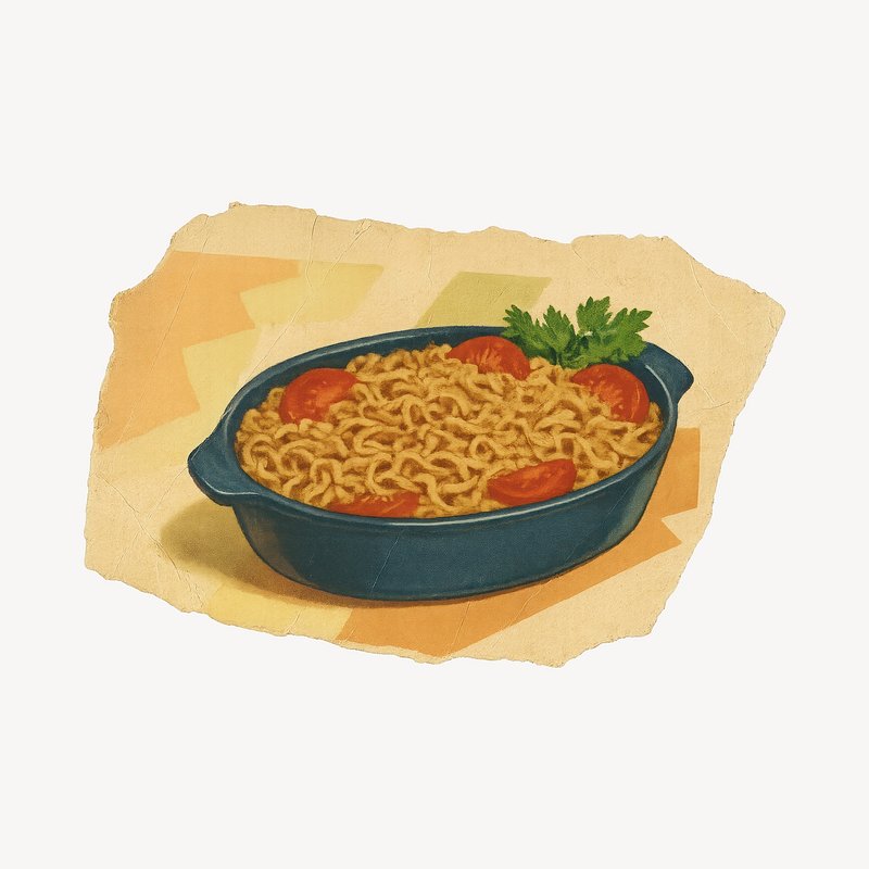 PNG Retro pasta dish illustration. https://www.rawpixel.com/image/24444913/png-retro-pasta-dish-illustrationView license