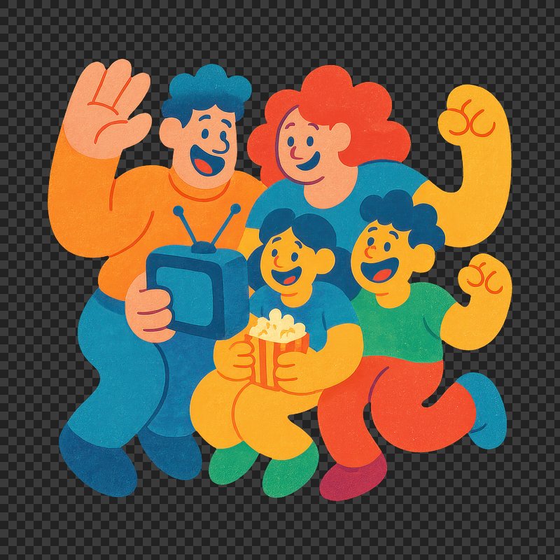 PNG Colorful cartoon family watching TV. https://www.rawpixel.com/image/21880174/png-colorful-cartoon-family-watching-tvView license