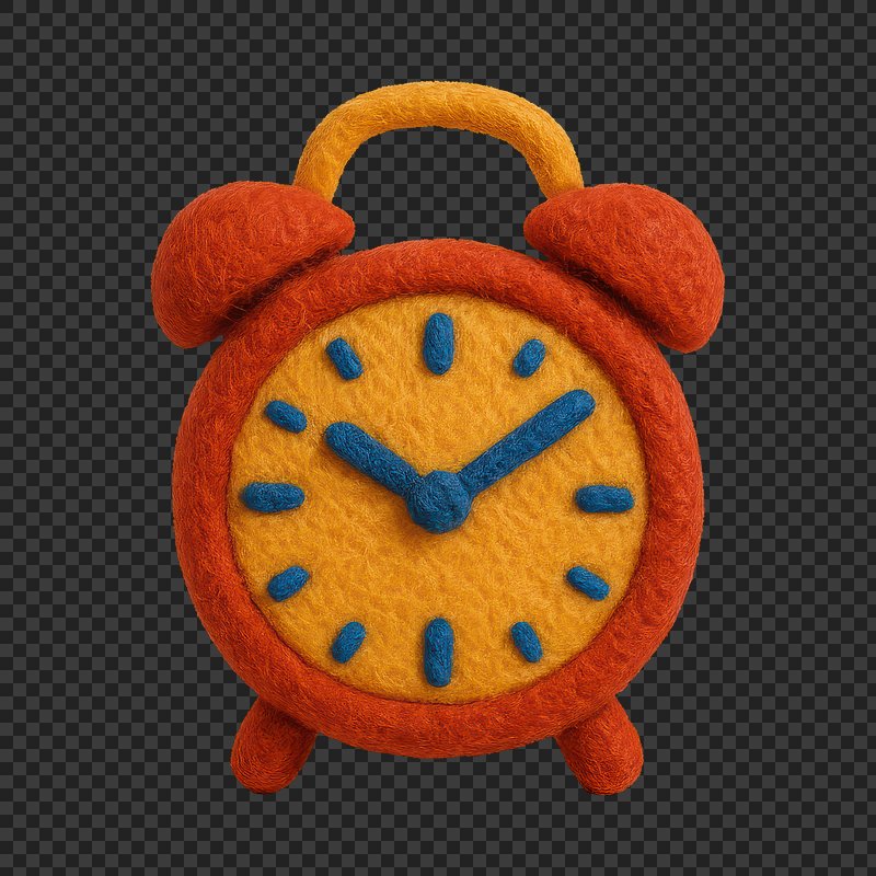 PNG Colorful felt alarm clock illustration. https://www.rawpixel.com/image/21966326/png-colorful-felt-alarm-clock-illustrationView license