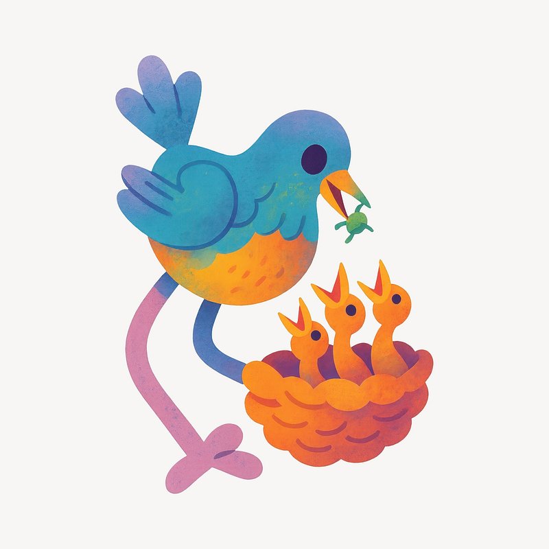 Colorful bird feeding chicks. https://www.rawpixel.com/image/22401954/colorful-bird-feeding-chicksView license