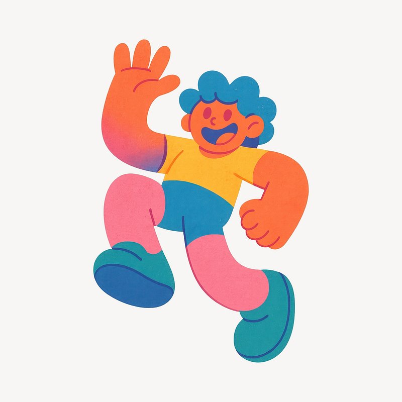 Colorful cartoon character waving https://www.rawpixel.com/image/22391667/colorful-cartoon-character-wavingView license