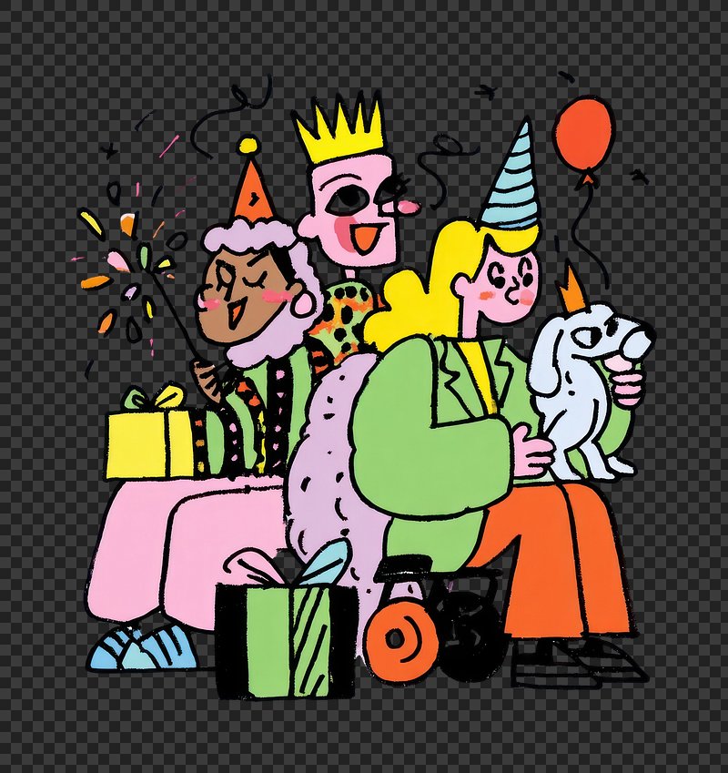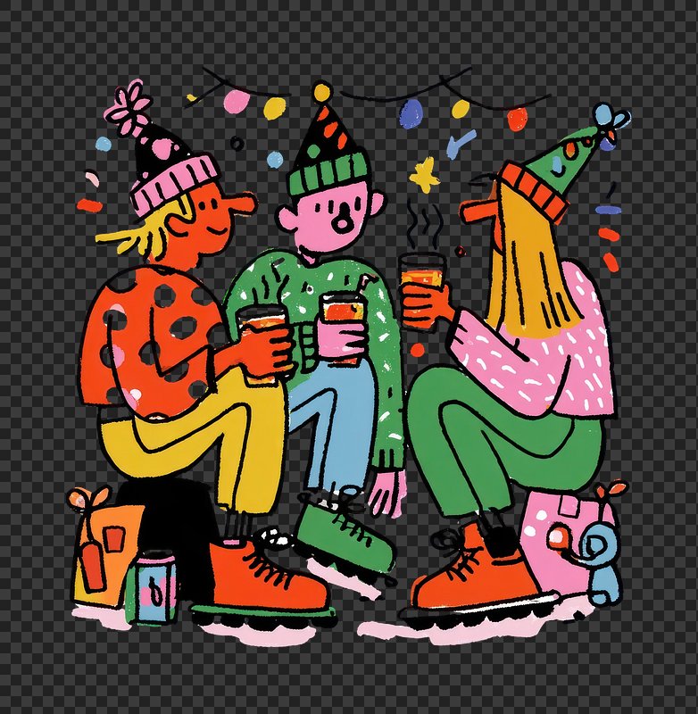 PNG Colorful celebration with joyful characters. https://www.rawpixel.com/image/24017857/png-colorful-celebration-with-joyful-charactersView license