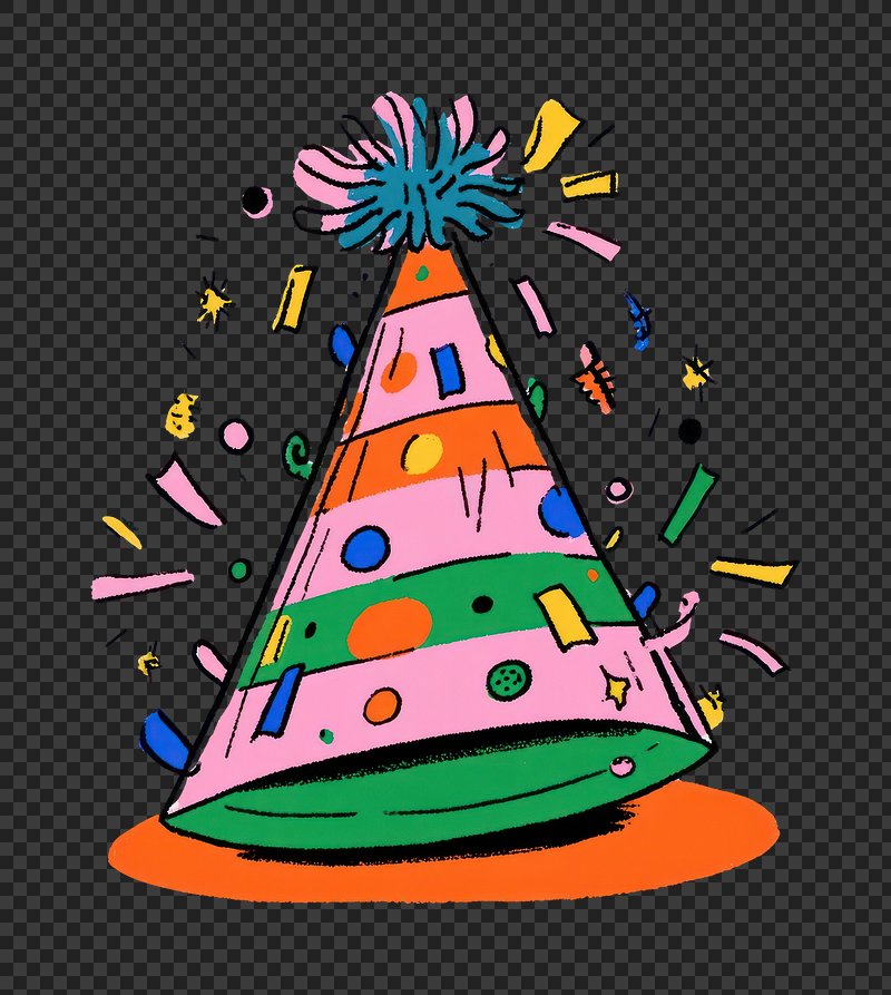 Png cone hat sticker birthday decoration vintage illustration https://www.rawpixel.com/image/3040626/free-illustration-png-birthday-party-hatView license