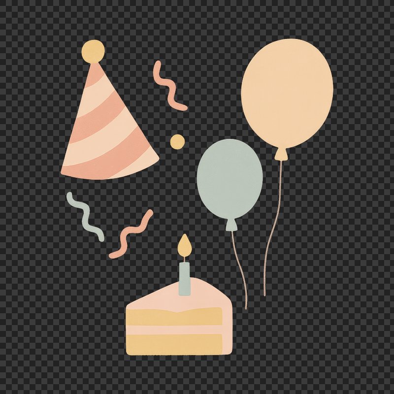 PNG Colorful birthday celebration elements. https://www.rawpixel.com/image/23987696/png-colorful-birthday-celebration-elementsView license