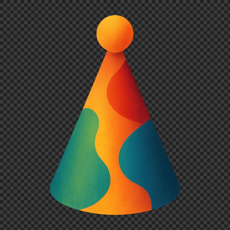 PNG Colorful abstract party hat illustration. https://www.rawpixel.com/image/24539540/png-colorful-abstract-party-hat-illustrationView license
