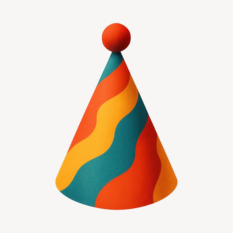 Colorful wavy party hat illustration. https://www.rawpixel.com/image/24748894/colorful-wavy-party-hat-illustrationView license