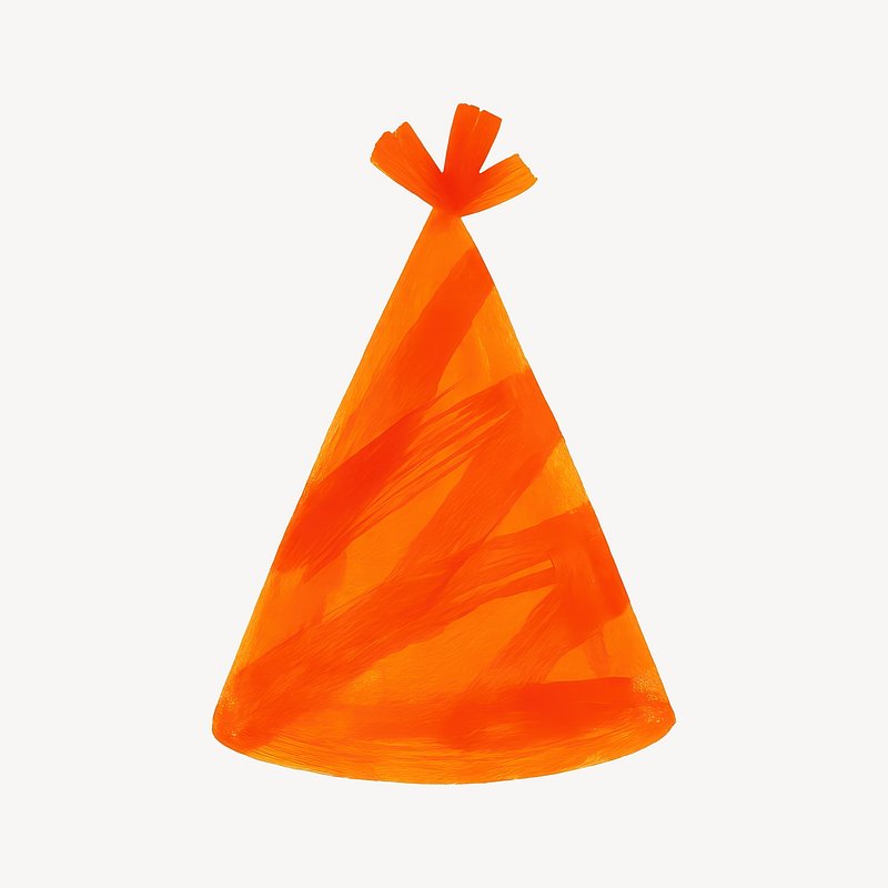 Vibrant orange party hat illustration. https://www.rawpixel.com/image/23179706/vibrant-orange-party-hat-illustrationView license
