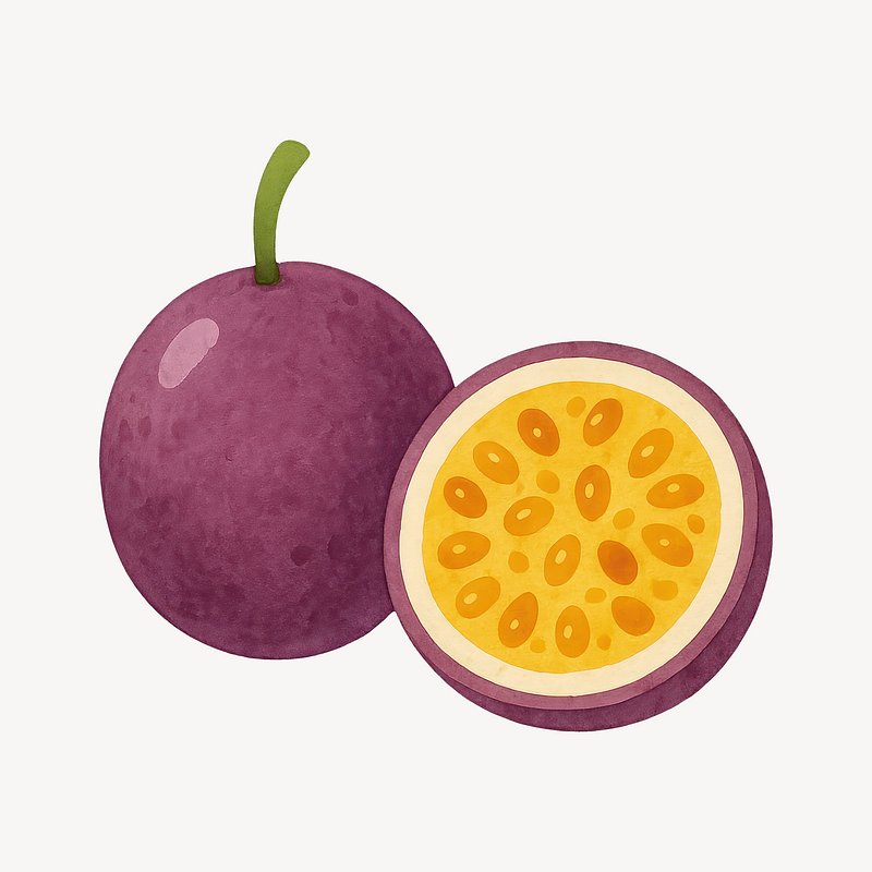 Vibrant passion fruit watercolor illustration. https://www.rawpixel.com/image/19338099/vibrant-passion-fruit-watercolor-illustrationView license