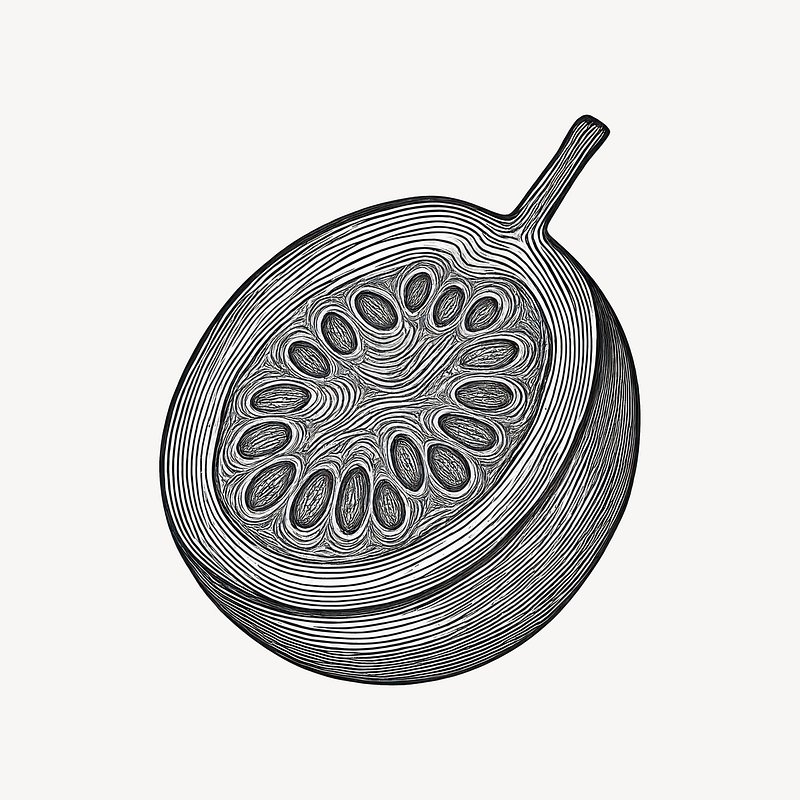 Passionfruit line art illustration. https://www.rawpixel.com/image/24904674/passionfruit-line-art-illustrationView license