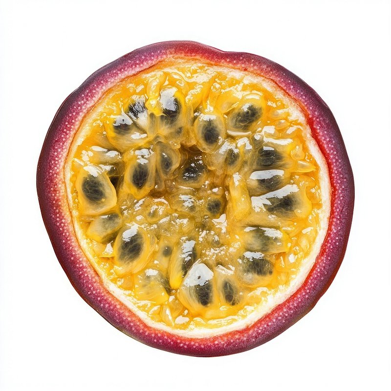 Vibrant passion fruit slice. https://www.rawpixel.com/image/25585048/vibrant-passion-fruit-sliceView license