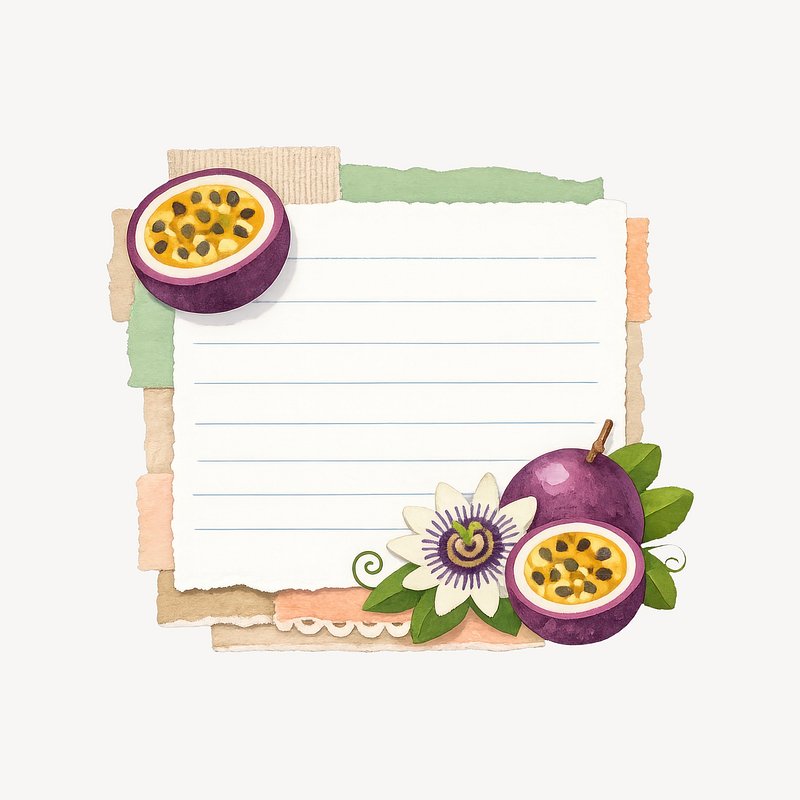 Passionfruit-themed decorative note. https://www.rawpixel.com/image/25792749/passionfruit-themed-decorative-noteView license