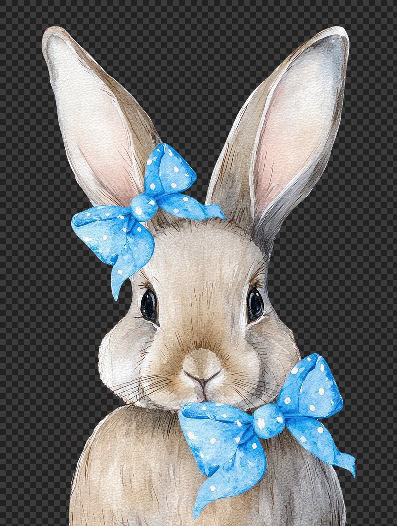 PNG Charming rabbit with blue bows. https://www.rawpixel.com/image/25253399/png-charming-rabbit-with-blue-bowsView license