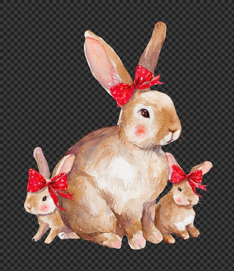 PNG Charming rabbit with red bows. https://www.rawpixel.com/image/25252815/png-charming-rabbit-with-red-bowsView license