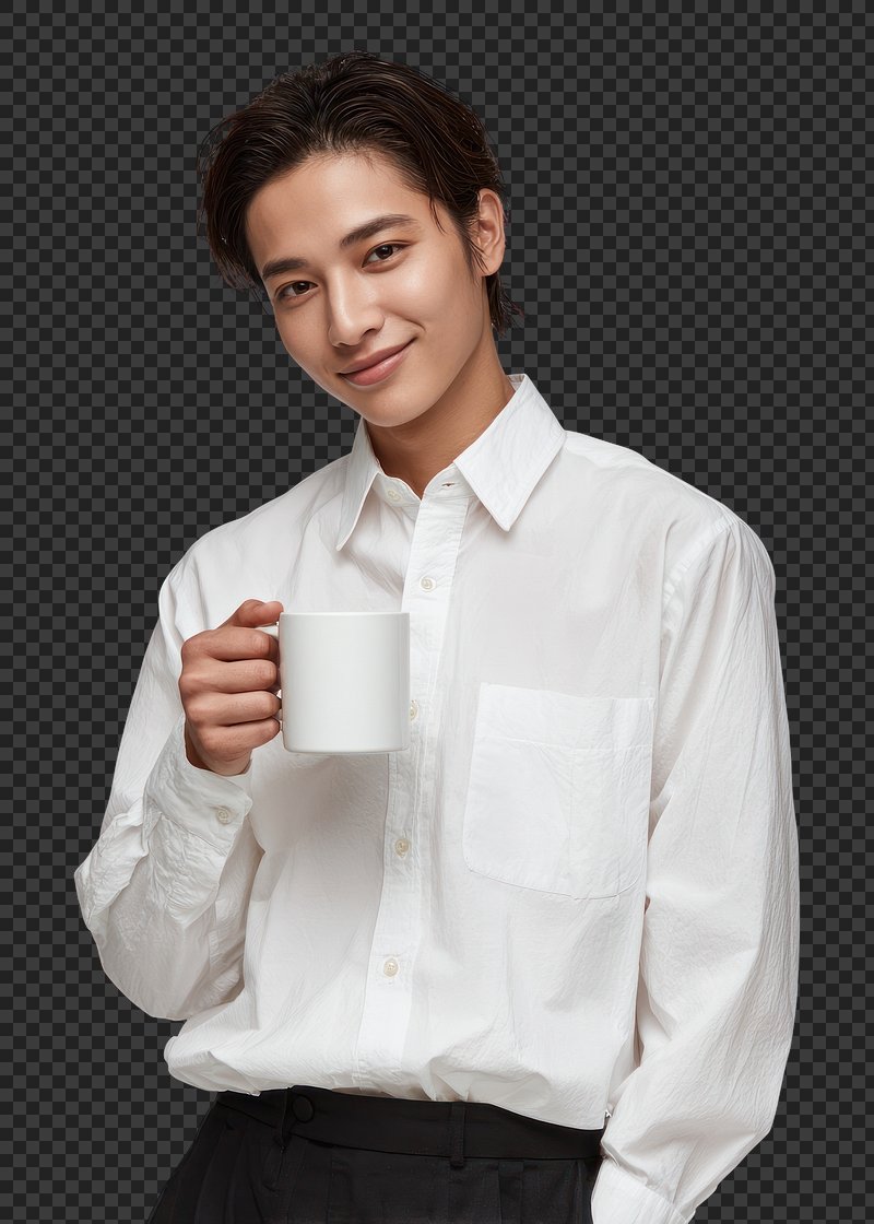 PNG Smiling person holding white mug. https://www.rawpixel.com/image/21058453/png-smiling-person-holding-white-mugView license