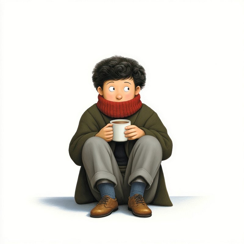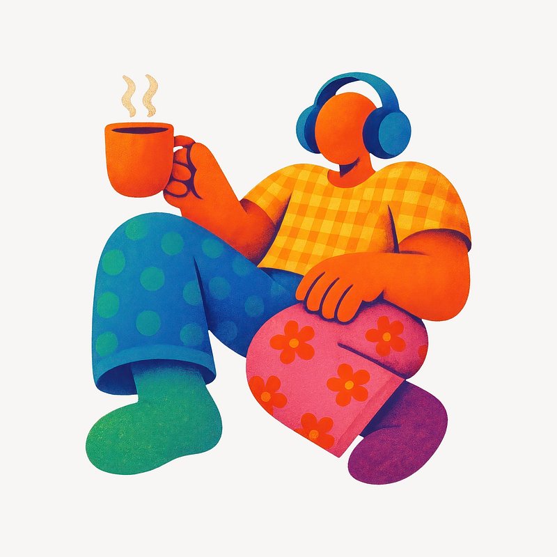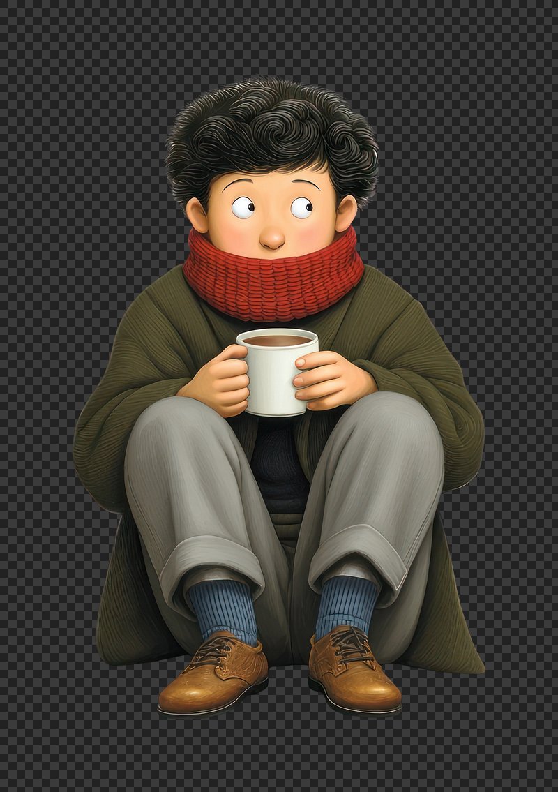 Cozy character sipping coffee. https://www.rawpixel.com/image/20532790/cozy-character-sipping-coffeeView license