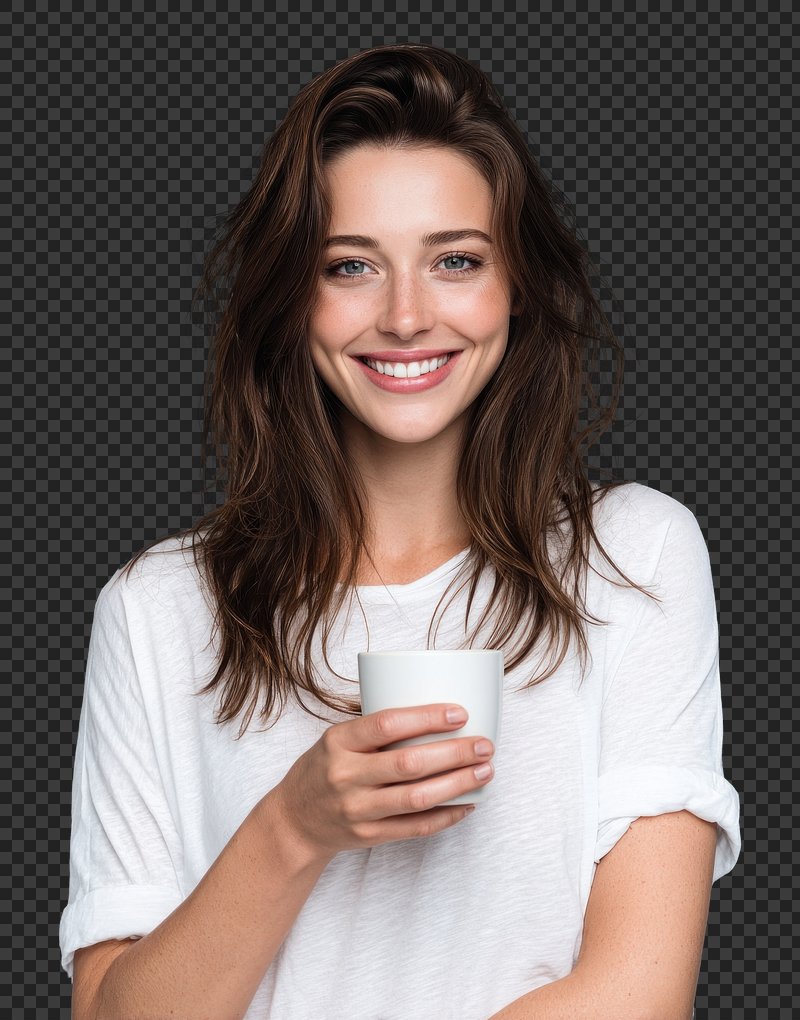 PNG Smiling woman holding white mug. https://www.rawpixel.com/image/20884578/png-smiling-woman-holding-white-mugView license