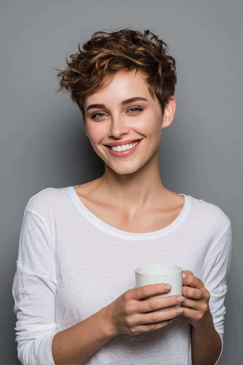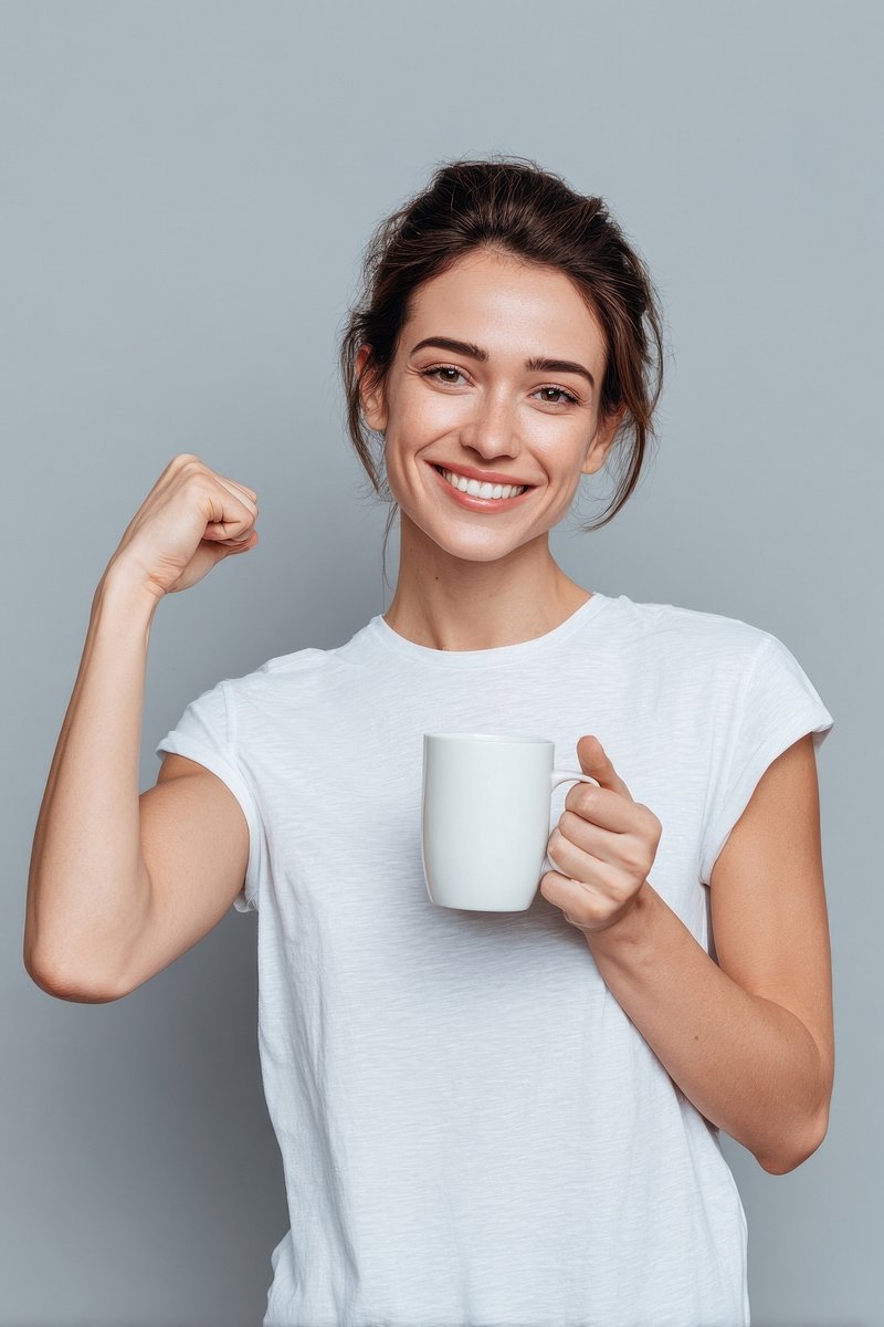 Smiling woman holding white mug https://www.rawpixel.com/image/20561571/smiling-woman-holding-white-mugView license