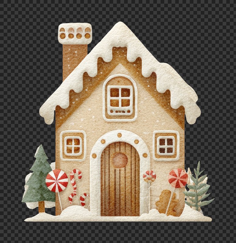 PNG Whimsical gingerbread house illustration. https://www.rawpixel.com/image/20890489/png-whimsical-gingerbread-house-illustrationView license