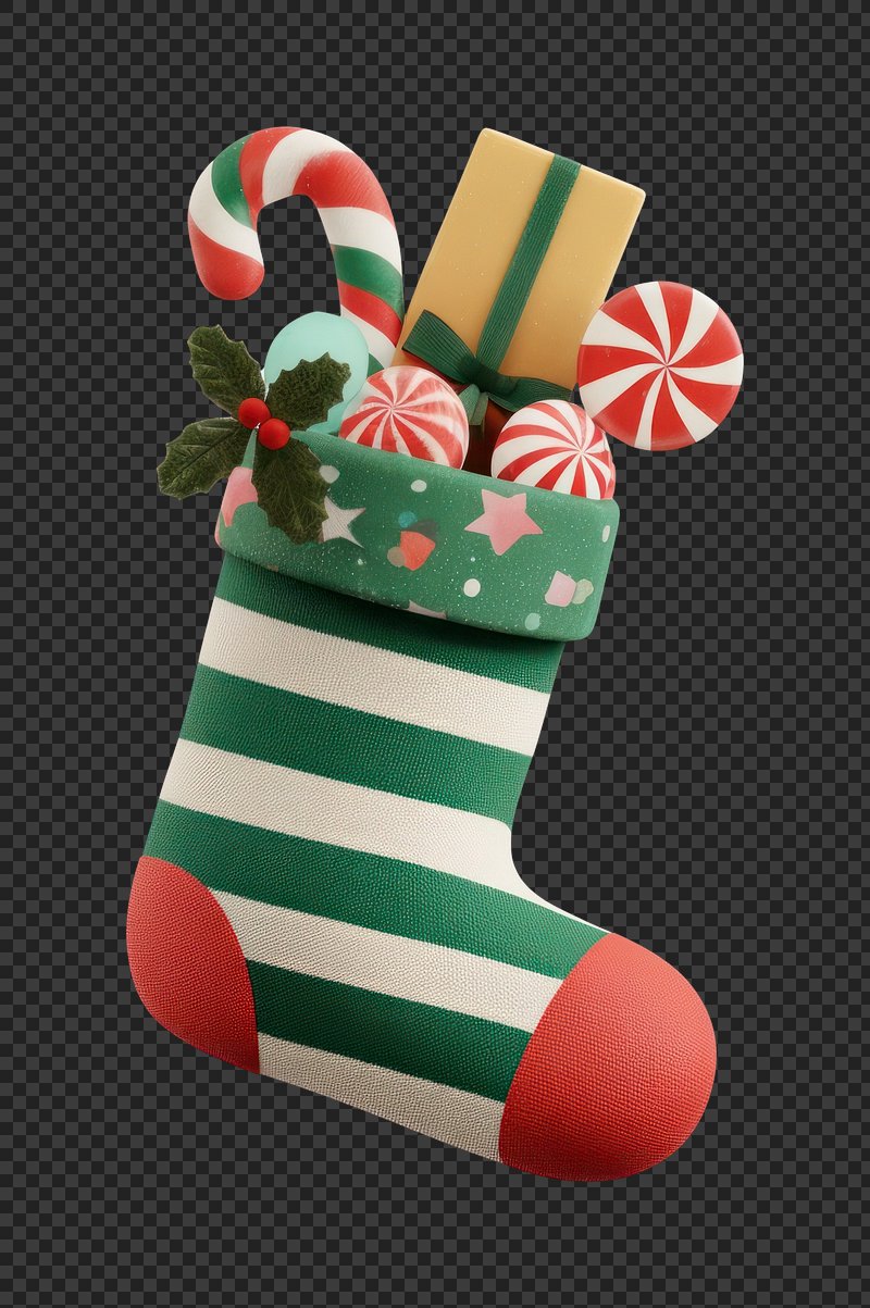 PNG Christmas sock with candy decoration peppermint stocking. https://www.rawpixel.com/image/21918848/png-christmas-sock-with-candy-decoration-peppermint-stockingView license