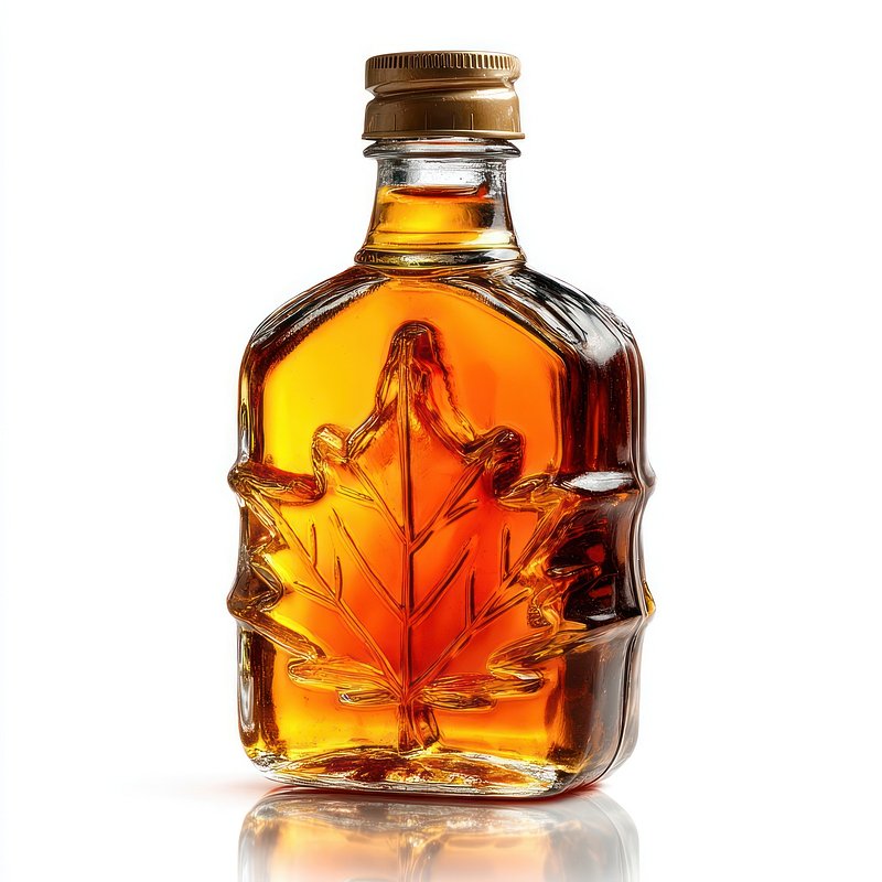 Maple syrup bottle with leaf. https://www.rawpixel.com/image/20562191/maple-syrup-bottle-with-leafView license