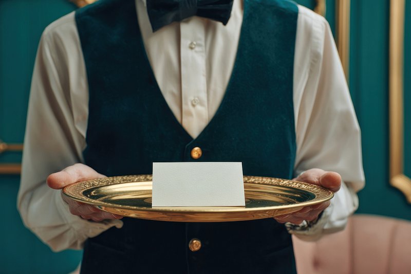 Elegant concierge holding blank card https://www.rawpixel.com/image/24126096/elegant-concierge-holding-blank-cardView license