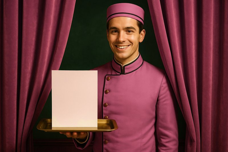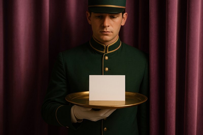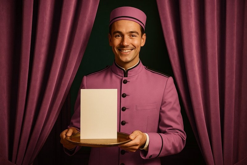 Elegant bellhop presenting blank card https://www.rawpixel.com/image/24126114/elegant-bellhop-presenting-blank-cardView license