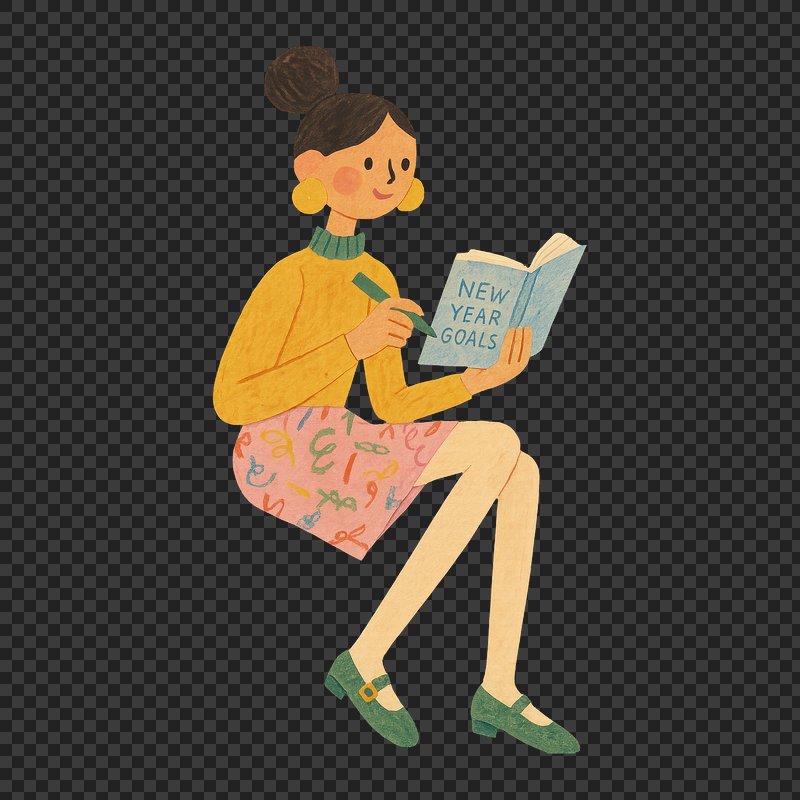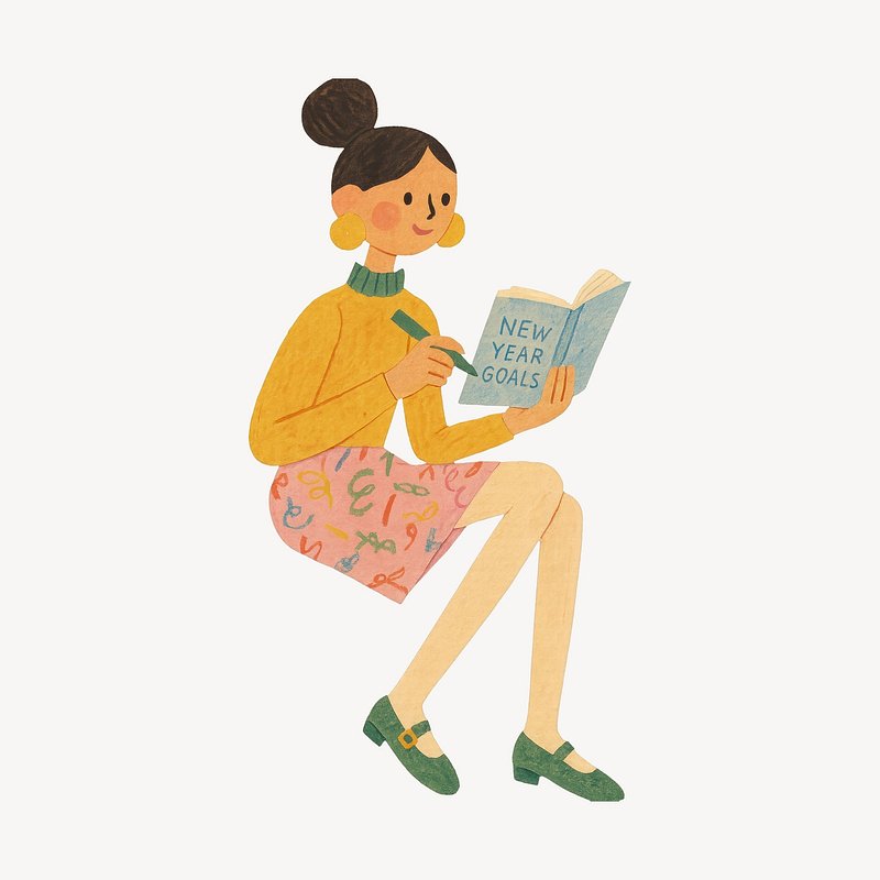 PNG Illustration of woman reading goals. https://www.rawpixel.com/image/22235003/png-illustration-woman-reading-goalsView license