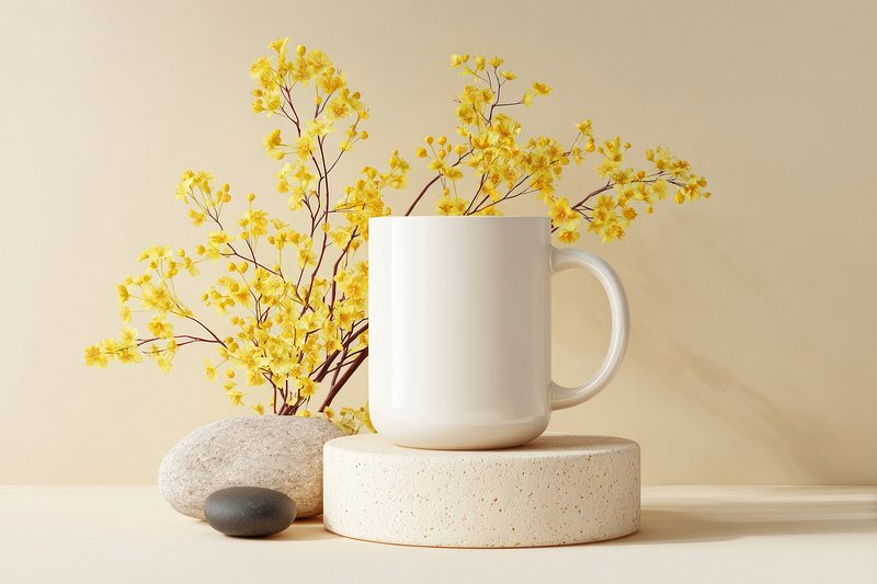 Minimalist mug with yellow flowers https://www.rawpixel.com/image/24701245/minimalist-mug-with-yellow-flowersView license