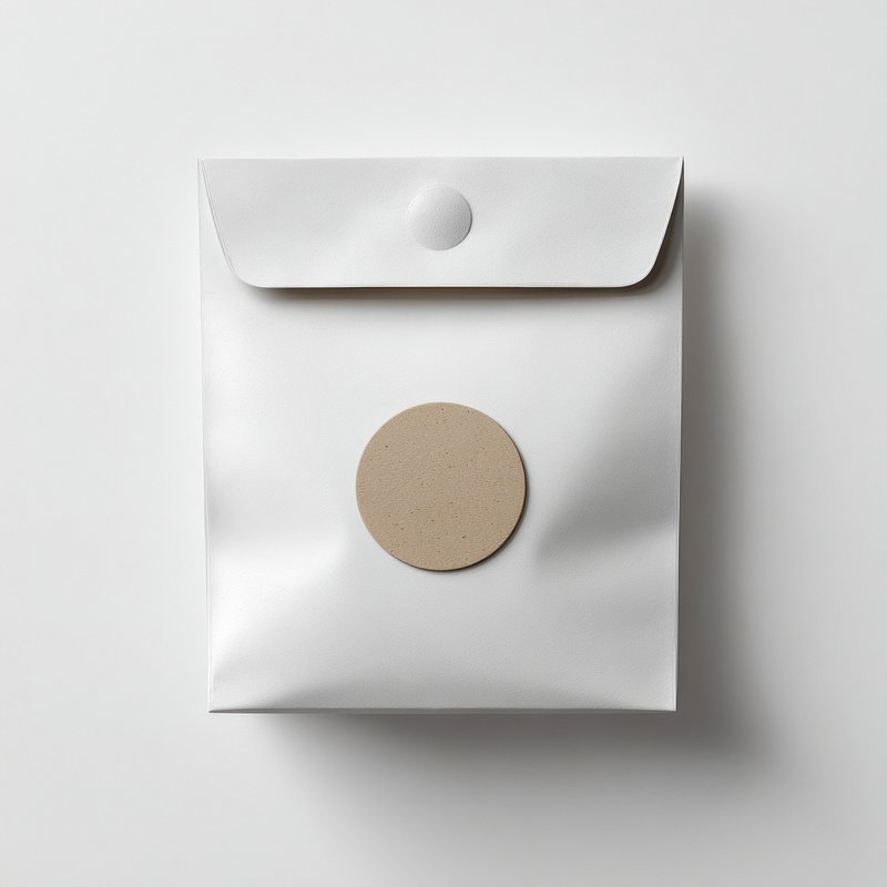Minimalist white packaging pouch https://www.rawpixel.com/image/24530166/minimalist-white-packaging-pouchView license