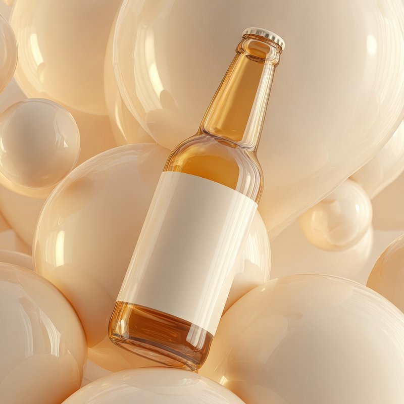 Beer bottle among glossy spheres https://www.rawpixel.com/image/23370620/beer-bottle-among-glossy-spheresView license