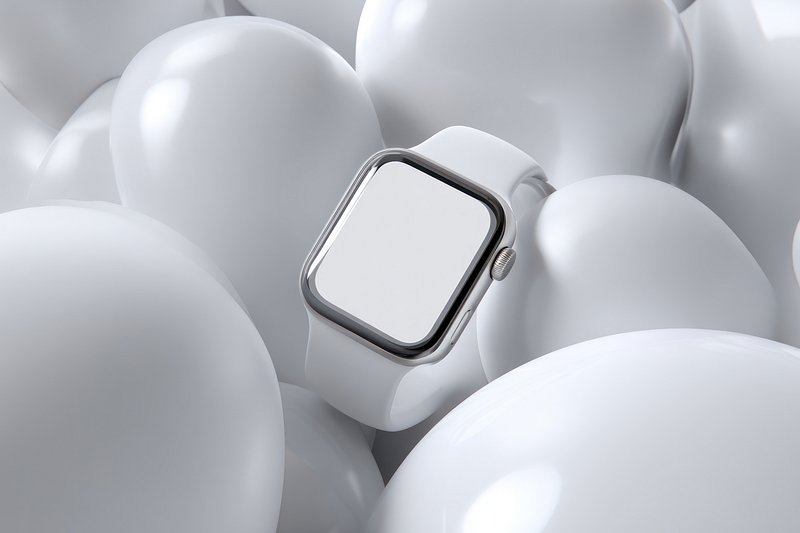 Modern smartwatch amidst white balloons. https://www.rawpixel.com/image/23370606/modern-smartwatch-amidst-white-balloonsView license