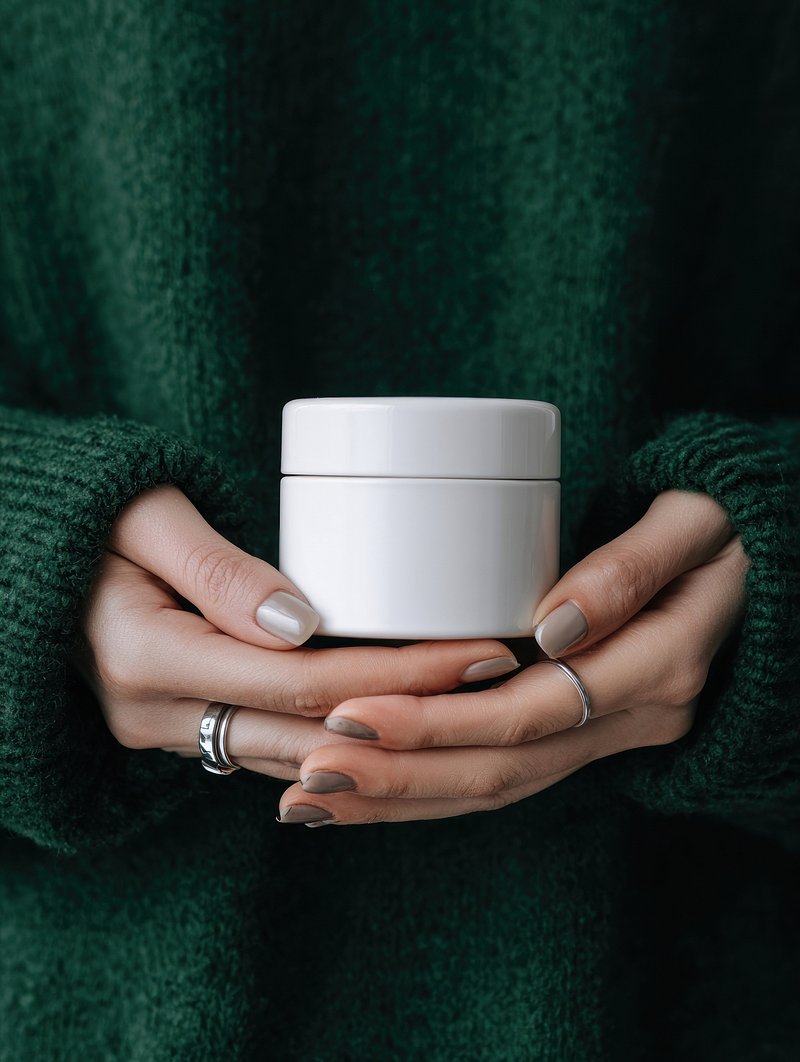 Hands holding white cosmetic jar. https://www.rawpixel.com/image/23367855/hands-holding-white-cosmetic-jarView license